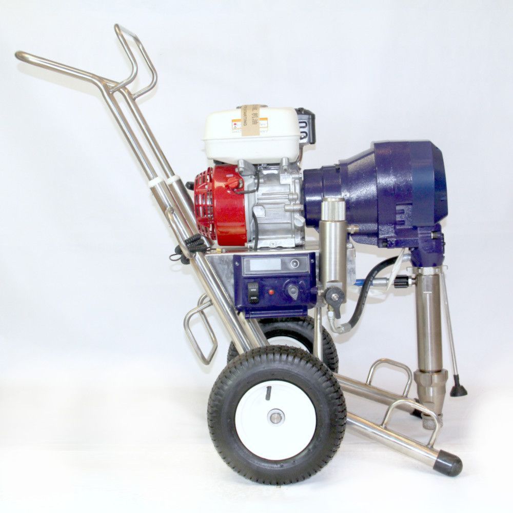Безвоздушный окрасочный аппарат с бензиновым приводом PremJet PJ 8341G предназначен для профессионального применения ЛКМ высокой вязкости с содержанием абразивов для грунтования и окраса больших объёмов в промышленности и на производстве, для нанесения полимерной шпатлёвки, огнезащитных и двух компонентных составов с одновременным применением двух краскораспылителей