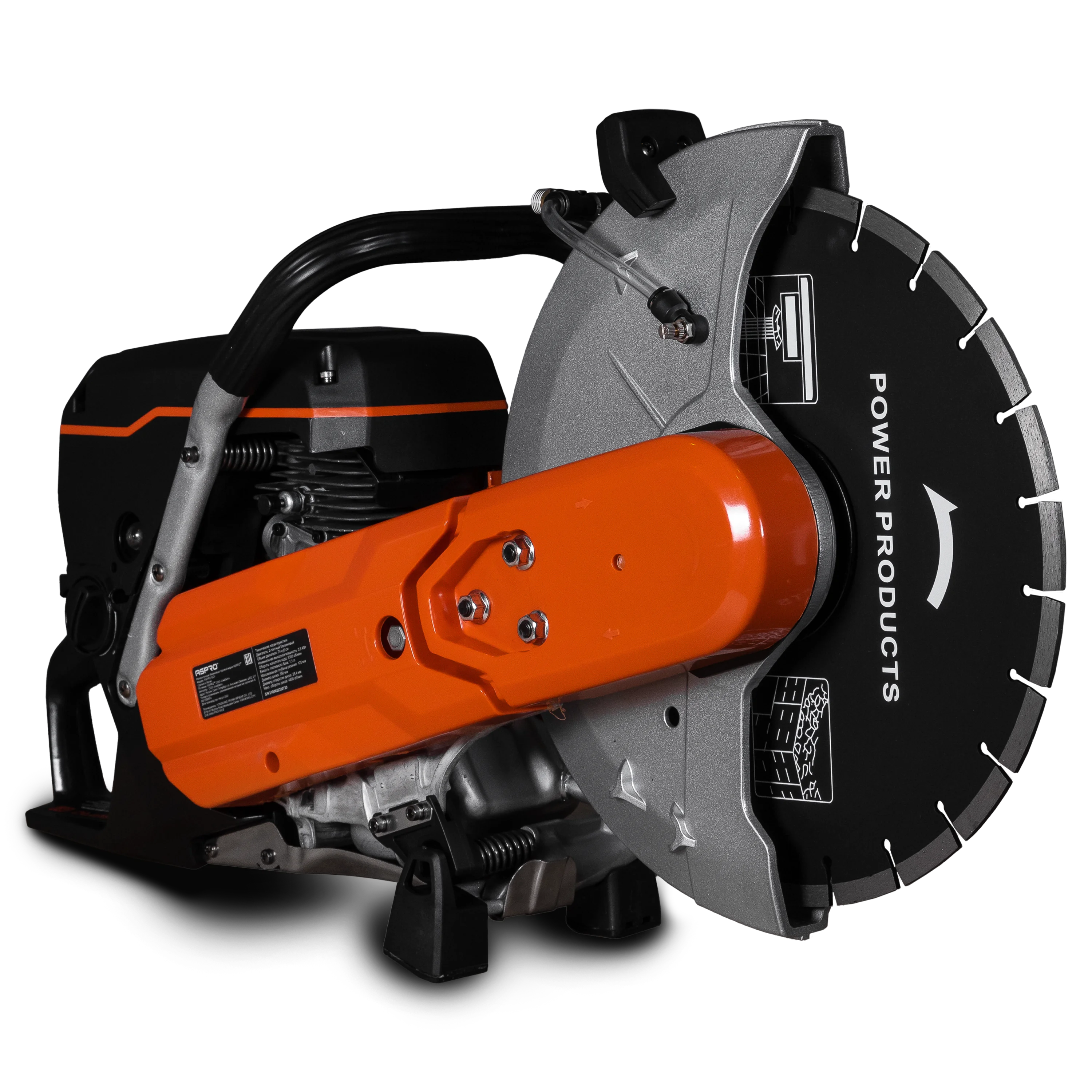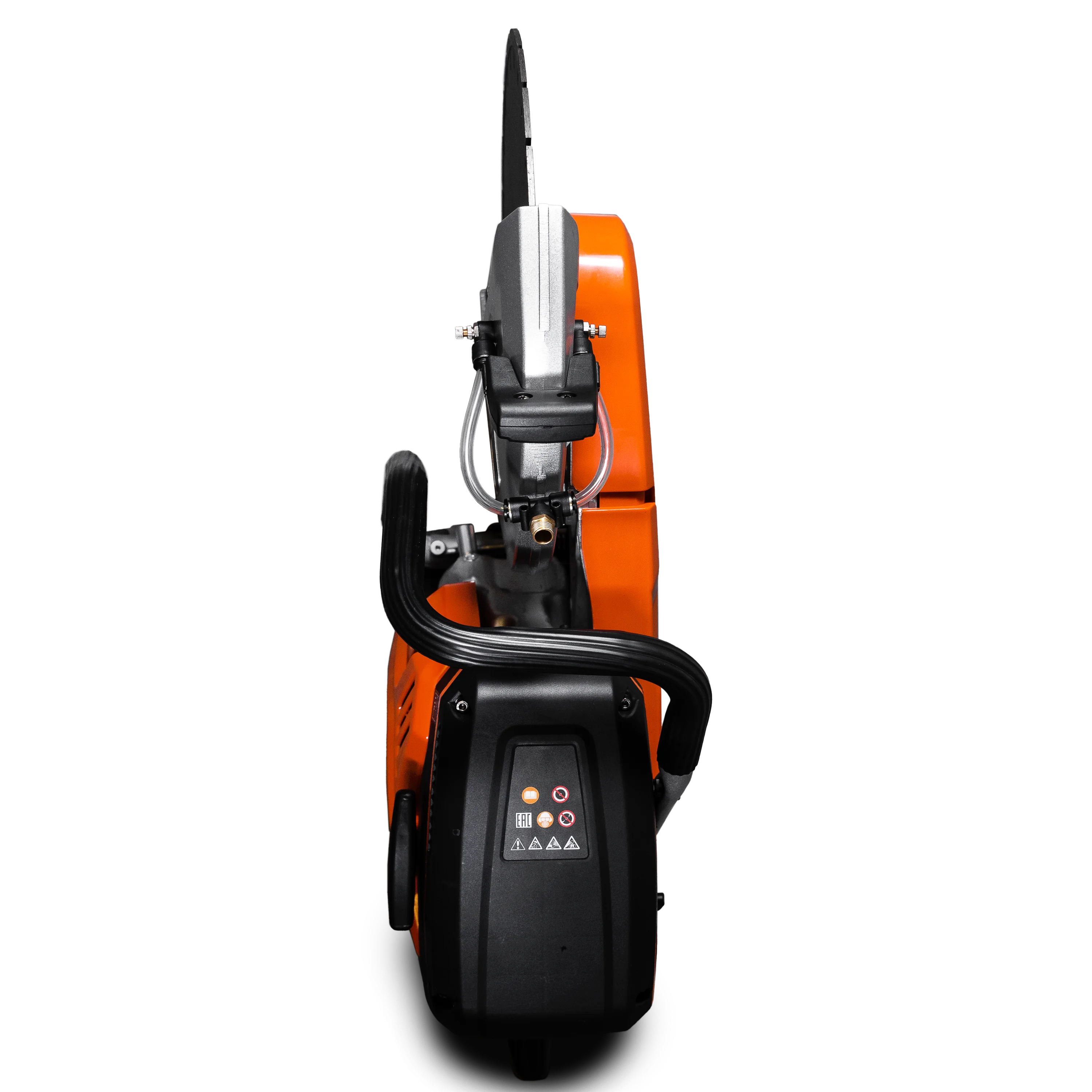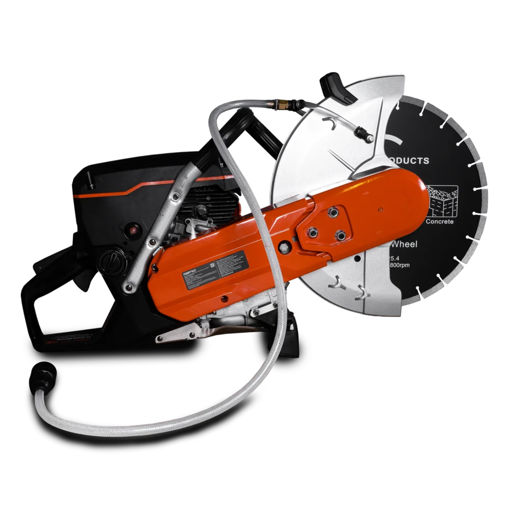 Бензорез оснащён подачей воды для мокрого реза, системой гашения вибрации и магниевым защитным кожухом. Мощность двигателя 3500 Вт.